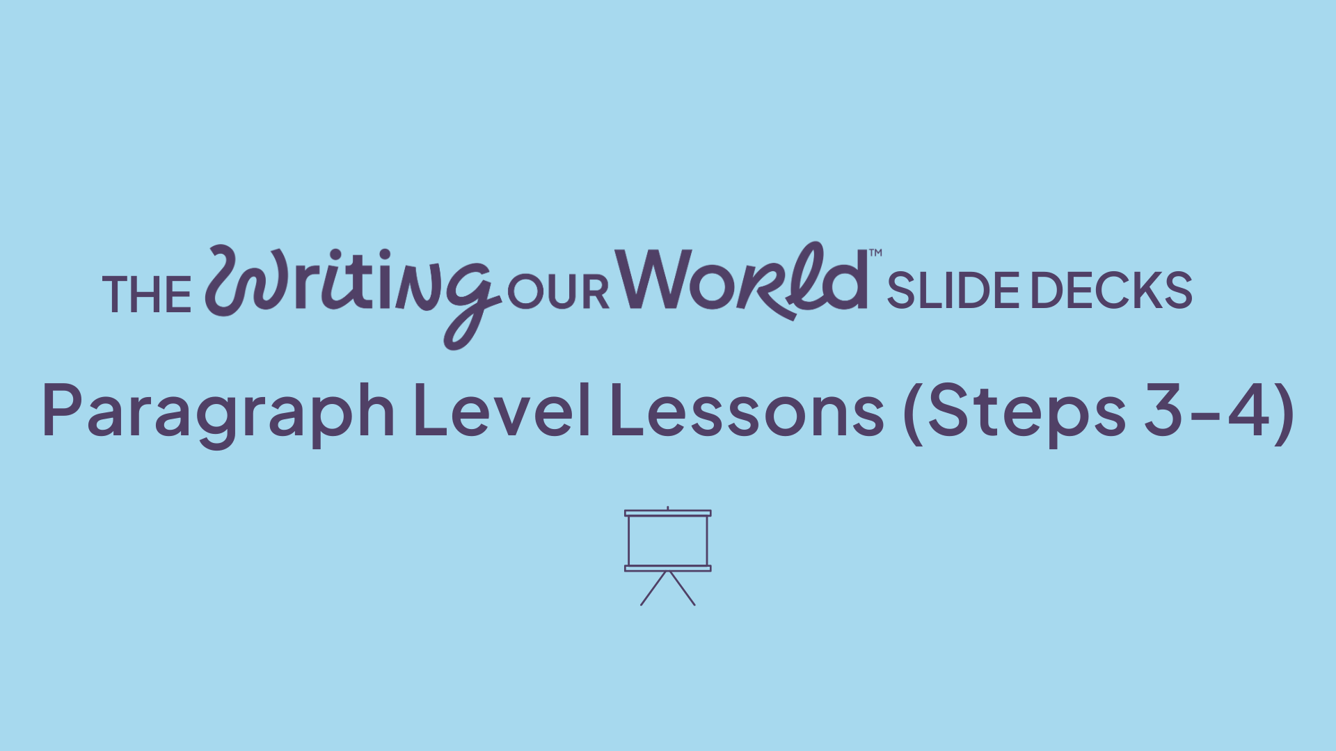 Companion slide decks for every lesson of Steps 3 & 4 of Writing Our World™. These decks cover: